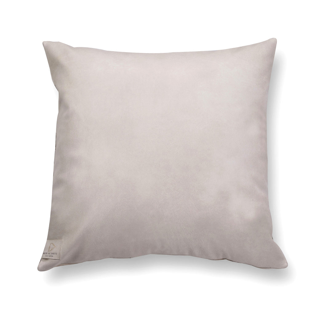 Well sewn artificial leather with a gentle touch,this pillow presents an artwork from the